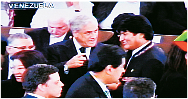 Protocolo. En otro momento, los mandatarios de Chile y Bolivia tuvieron que sonreír y limar asperezas. Foto: Hernán Virgo (imagen de Gigavisión)
