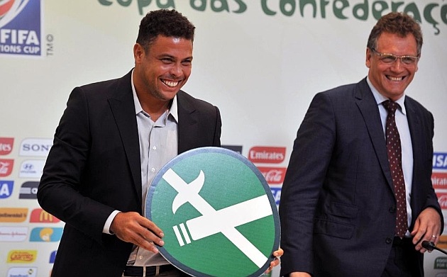 El secretario de la FIFA, que reconoció ya haber sido consumidor de tabaco, pidió precisamente a otros dos fumadores, el exfutbolista Ronaldo y el ministro brasileño de Deportes, Aldo Rabelo, que posaran para los fotógrafos exhibiendo los carteles.