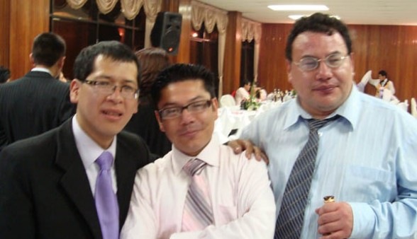 Ref imagen. Harry Suaznabar (centro) junto al ex fiscal de Santa Cruz Isabelino Gómez e Iván Córdoba en una recepción. La Prensa – archivo