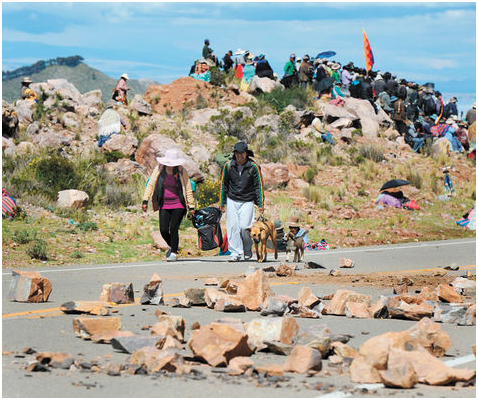 Hoy se cumplen cuatro días desde que el camino Tiquina-Copacabana quedó bloqueado por campesinos que exigen la ejecución del proyecto Wiñay Marka, la construcción de tres puentes sobre el Titicaca. El mismo fue desahuciado anoche  por el gobernador César Cocarico.