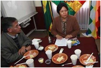 Foto: La ministra Cecilia Ayllón con periodistas de Página Siete