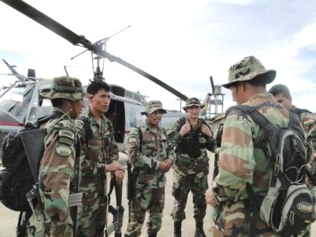 “Grupo Garras del Valor del FELCN” (Fuerza Especial de Lucha contra el Narcotráfico, de Bolivia) escribió en el epígrafe de otra de sus fotos, en la que se ve a un grupo de soldados camuflados recibiendo instrucciones en las cercanías de un helicóptero.