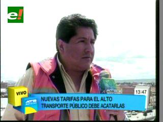 El Alcade de El Alto, Edgar Patana, informó que las tarifas del autotransporte público en esa urbe se incremento en 0.30 centavos, diferenciando tarifas nocturnas, estudiantiles, universitarias y para personas de la tercera edad.