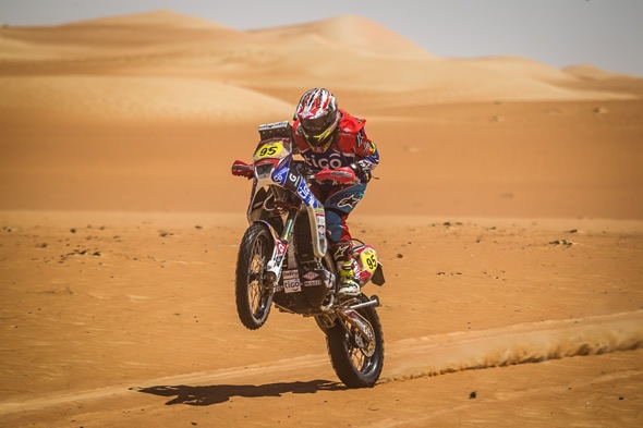 El piloto boliviano logró algo inédito para un deportista en el motociclismo nacional, se posicionó esta mañana en el primer lugar de su categoría (+450) en la primera fecha del mundial de rally que se corrió durante cinco etapas en Abu Dhabi.