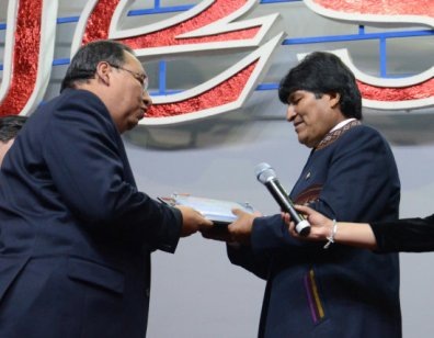 El día de ayer la comunidad cristiana de Ekklesia entregó un reconocimiento al presidente Morales, en medio de aplausos y oraciones y con banderas tricolores fue reconocido con el premio al liderazgo 2012. Dentro del acto un momento emotivo fue cuando un niño se acercó y le regaló una biblia al presidente Evo Morales. En medio de música y danzas folclóricas, el mandatario del Estado aplaudió y agradeció la acogida del público asistente.