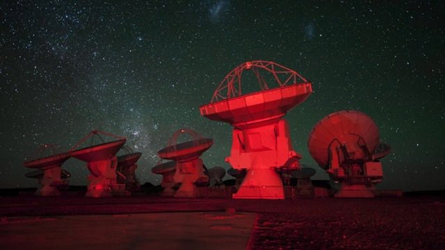 El ALMA se ubica en los Andes chilenos a una altitud de 2.900 metros. Es el mayor complejo astronómico de la Tierra. Está compuesto por 66 antenas que, conectadas, forman un único telescopio capaz de observar la luz emitida por las estrellas y planetas en longitudes de onda invisibles para el ojo humano. [ALMA]