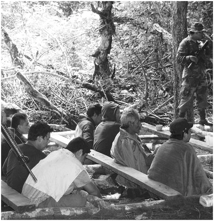 Descanso. Las once personas aprehendidas dormían todavía en carpas de plástico a fin de evitar la picadura de mosquitos. Tenían también una sector de comidas donde una mujer era la encargada de preparar los alimentos.