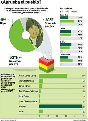 Los analistas no se atreven aún a pronosticar un escenario sin Morales en las elecciones de 2014 y la mitad de los consultados tampoco se decantaría por ninguna figura del Gobierno como sustituto del presidente.