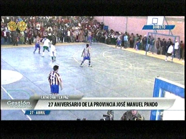 Tv noticias. El vicepresidente del Estado, Álvaro García Linera, participó del acto de entrega de cancha con césped sintético en la zona Bautista Saavedra de la ciudad de El Alto. Mientras que el presidente Evo Morales estuvo presente en la localidad de Catacora con motivo del aniversario de fundación de la provincia José Manuel Pando del departamento de La Paz. Posterior a los eventos, García Linera y Morales, por separado, protagonizaron encuentros de fútbol el primero y de futsal el segundo.