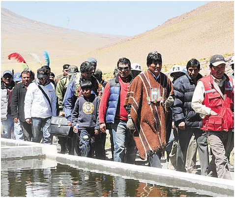 image Recurso. El presidente Evo Morales inauguró, en marzo, un criadero de truchas en el Silala. Víctor Gutiérrez-Archivo.
