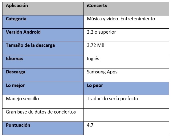 Esta es una aplicación que ofrece la posibilidad de asistir a conciertos desde un terminal con sistema operativo Android. Además, tiene la virtud de incluir una excelente base de datos, por lo que es muy complicado que no encuentres alguno que te guste entre la gran cantidad de actuaciones que puedes encontrar en iConcerts.