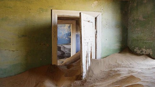 Kolmanskop en Namibia. Ciudad minera abandonada, está en el desierto de Namibia. Su existencia se debe a un trabajador llamado Zacarías Lewala, que encontró un diamante y se lo mostró a su jefe alemán. En 1908, se abrió una mina de diamantes y se fundó la pequeña ciudad de Kolmanskop.