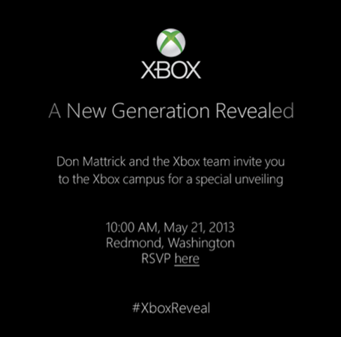 Screen-Shot-2013-04-24-at-12.59.19-PM Los rumores se confirman. Tras una serie de retrasos, Microsoft por fin ha mandado las invitaciones de prensa para la presentación de la próxima generación de Xbox. La nueva consola de la compañía será presentada tres meses después de que Sony anunciara sus intenciones de lanzar PlayStation 4 al mercado este año. Eso sí, en el evento de Sony nunca llegamos a ver la consola en sí, solo los títulos que acompañarán su lanzamiento y el mando de juegos.