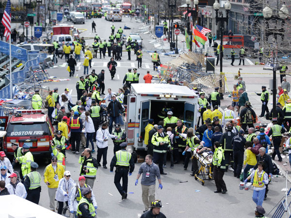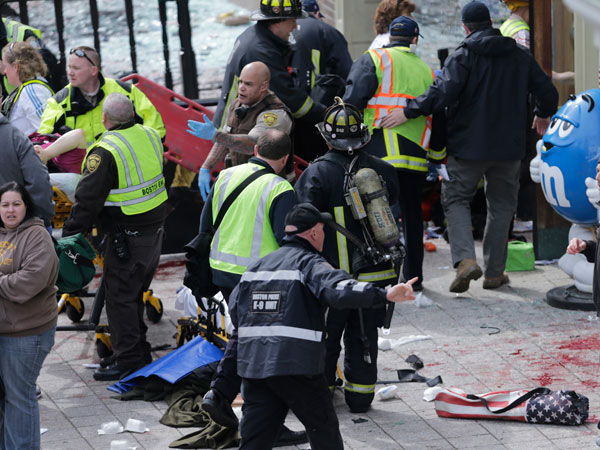 "Vi dos explosiones. La primera fue cerca de la línea de llegada. Escuché un fuerte estallido y vi una nube de humo", dijo el reportero del Boston Herald Chris Cassidy, que corría el maratón. Agregó que siguió corriendo y escuchó detrás otra explosión. Un fotógrafo dijo a Fox News que vio a personas con miembros de su cuerpo amputados.