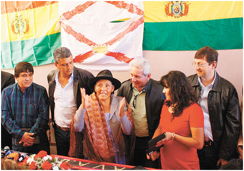 Reunión. La exprefecta Savina Cuéllar junto a sus invitados en Sucre. La Razón / Sucre.