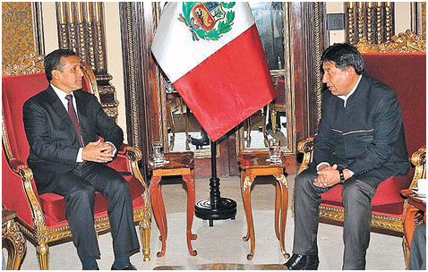 Los presidentes de Bolivia, Evo Morales, y de Perú, Ollanta Humala, se reunirán en la frontera común de ambos países este 2013, para impulsar una ruta desde la Amazonia hasta el Océano Pacífico, informó este viernes el gobernante boliviano.