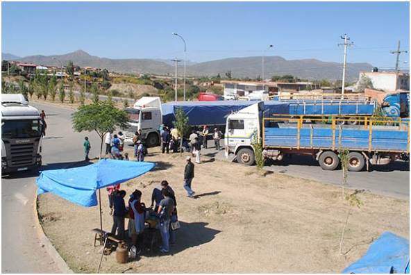 Bloqueo del transporte pesado en el ingreso a Tarija. | Foto archivo – Apg Agencia