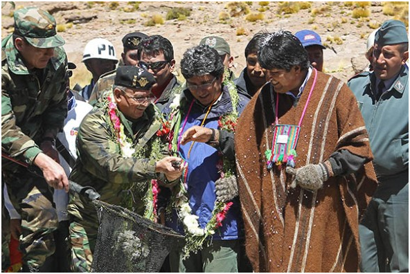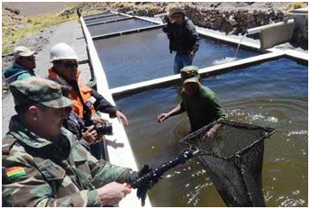 El 28 de marzo pasado, Morales inauguró el primero de estos proyectos, que emplea el 10 por ciento de las agua en cuatro piscinas para la cría de truchas.