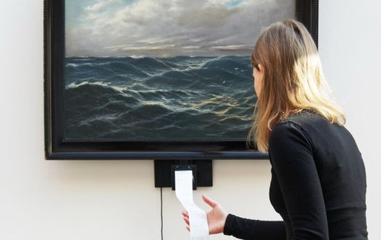 Por el momento sólo una de las obras de la colección de The Value of Art se ha sometido al dictamen del público, primero en la DAM Gallery de Colonia, una galería alemana muy activa en el campo de los nuevos medios, luego en el ZKM Center for Art and Media deKarlsruhe y ahora, hasta el 9 de junio, en el festival de arte digital Les Bouillants deVern-sur-Seiche (Bretaña) en Francia. Se trata de un lienzo de un correcto, pero mediocre pintor de la década de 1950, llamado Hansen, que representa un mar en tormenta. Sommerer y Mignonneau lo compraron en una casa de subastas en Viena por 425 euros y su precio ha alcanzado ya los 14.000 euros. “Este es el importe por el que efectivamente se vendería si algún comprador lo reclamara”, explican al Silicio los artistas, que han planteado un inédito sistema de valoración, cuyo objetivo es poner de manifiesto y a la vez cuestionar, cómo a menudo los precios de las obras de arteacaban siendo incomprensibles.