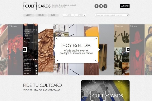 Así podemos definir rápidamente CultCards (cultcards.es), un nuevo proyecto que, además de mostrar lo que se cuece en nuestra región (ya hay datos de Madrid, Barcelona y Valencia) propone eventos exclusivos para sus clientes.