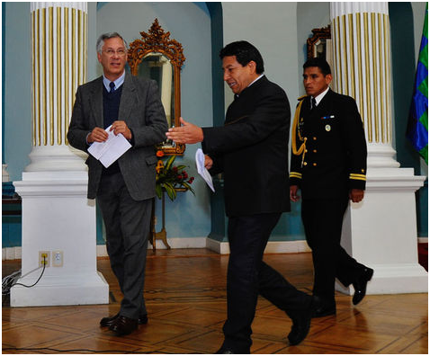 Cancillería. Choquehuanca y Rodríguez antes de la conferencia. Pedro Laguna.