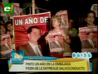 En Santa Cruz también se instaló una vigilia en la Plaza 24 de septiembre donde gran fracción de CN exigió al gobierno respetar el derecho internacional y otorgar salvo conducto al ex Senador Roger Pinto.