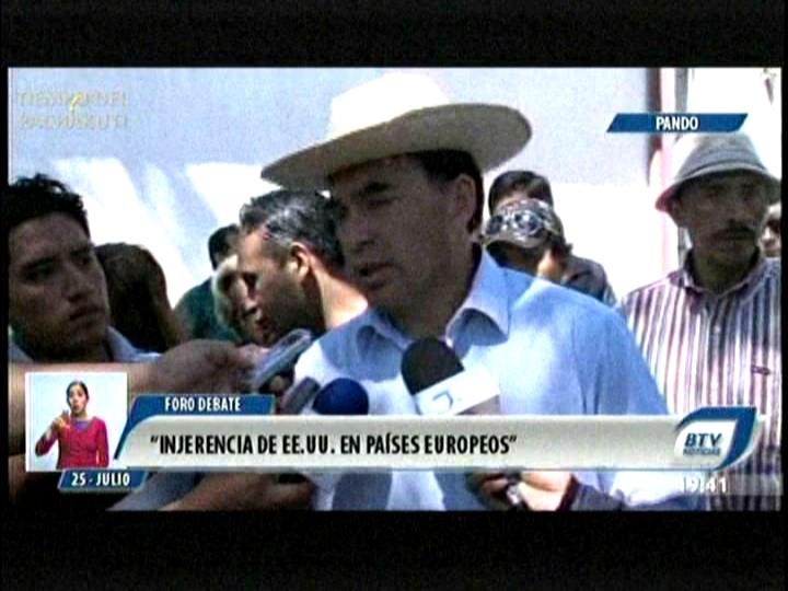 Pando.- El ministro de la Presidencia Juan Ramón Quintana en coordinación con la brigada parlamentaria de Pando realizó el foro debate “Injerencia de Estados Unidos en país europeos”.