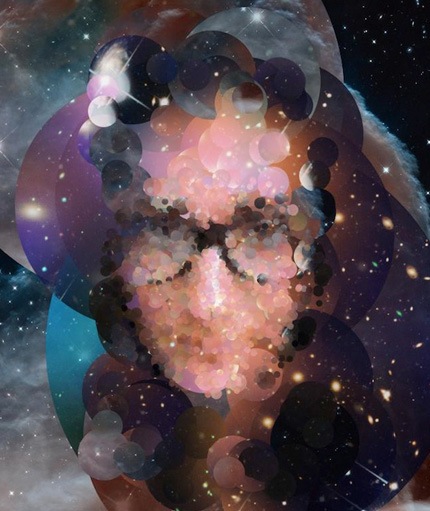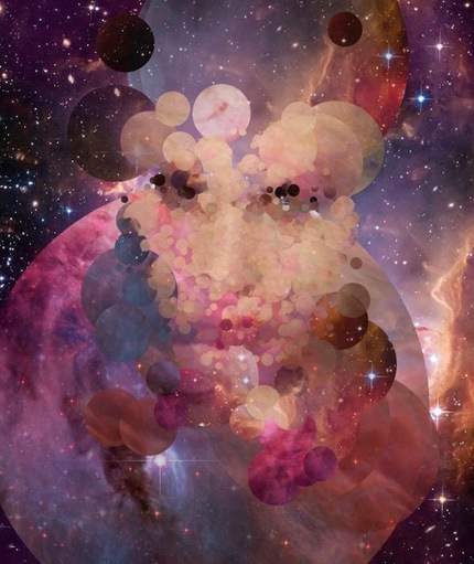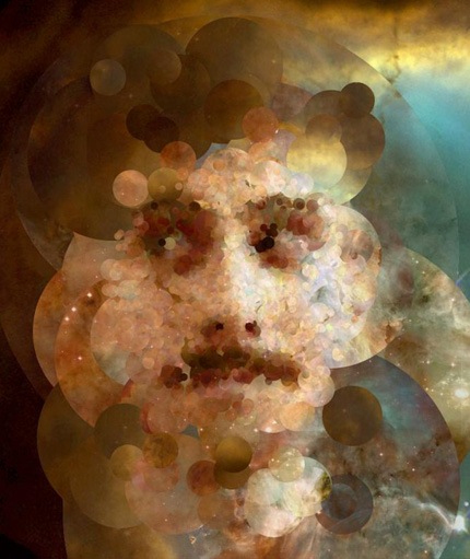 De un algoritmo especial resultan ‘collages’ de rasgos humanos, estrellas, nebulosas y galaxias.