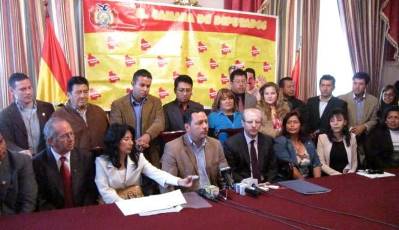 ALEXDiputados y senadores de Convergencia Nacional (CN) recurrirán a organismos nacionales e internacionales de defensa de los derechos humanos para investigar las denuncias del ex funcionario del ministerio de gobierno, Boris Villegas, quien involucró a altas autoridades en acciones desestabilizadoras y antidemocráticas.Esa decisión la asumieron luego que en la Sesión de Asamblea de esta noche el vicepresidente del Estado, Álvaro García, rechazó la inmediata conformación de una Comisión Especial Multipartidaria de las cámaras de Diputados y Senadores para la investigación de esas denuncias, según permiten los reglamentos de ambas cámaras, remitiendo el pedido a una comisión que analice tal pedido.El requerimiento camaral se realizó a través de una misiva que demandaba la dispensación de trámite y voto de urgencia para que de inmediato se proceda a la conformación de una Comisión Especial de Investigación, pero el vicepresidente del Estado, Álvaro García, se limitó a remitir la misma a una comisión de la Asamblea Legislativa.Al respecto, el diputado por Santa Cruz, Tomas Monasterio, anunció que ante el rechazo del oficialista Movimiento Al Socialismo en la Asamblea Legislativa de conformar dicha comisión, se recurrirá ante la Comisión Permanente de Derechos Humanos, Defensor del Pueblo y ante el Alto Comisionado de las Naciones Unidos para los Derechos Humanos, “para verificar y certificar que los tres ciudadanos involucrados en el caso Extorsión se encuentran en perfecto estado y no existe ningún tipo de amedrentamiento en su contra”.En ese sentido, Monasterio, acompañado por los diputados Jessica Echeverria, Franz Choque y Roy Moroni, pidió a los legisladores del MAS tener la valentía para transparentar las denuncias realizadas ante el Ministerio Público por el ex funcionario Boris Villegas.“Hemos recibido la denuncia de Villegas donde responsabiliza a una cúpula del MAS que estuviera digitando del poder Judicial para instrumentalizarla en persecución política a líderes de la oposición. Lamentamos profundamente la poca predisposición del Vicepresidente quien recurrió a la artimaña de remitir el pedido a la Comisión Multipartidaria Bicameral”.El legislador agregó que es necesario conformar esa comisión conjuntamente organismos defensores de los derechos humanos y del defensor del pueblo para transparentar las denuncias realizadas por los involucrados en el caso Extorsión y garantizar sus vidas y seguridad.Para finalizar dijo que una vez agotada la instancia administrativa de la Asamblea Legislativa y de las Cámaras de Diputados y Senadores, se recurrirá a organismos internacionales, “por lo que vamos formalizar una representación ante el Defensor del pueblo, el Alto Comisionado de los Derechos Humanos y la Comisión Permanente de Derechos Humanos a fin de conformar una comisión que verifique el estado de estos tres ciudadanos y se garantice su seguridad”.