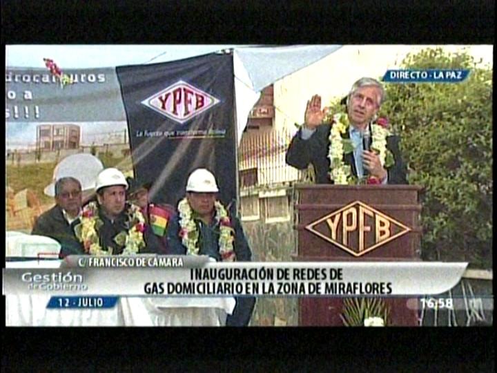 Noticias. “Desde fin de mes va a sobrar gas, hasta para exportar”, dijo al inaugurar una red de gas domiciliario en una zona de la ciudad de La Paz-