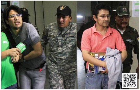 Foto: Audiencia. Los exabogados del Ministerio de Gobierno, Denis Rodas y Fernando Rivera fueron trasladados al Palacio.