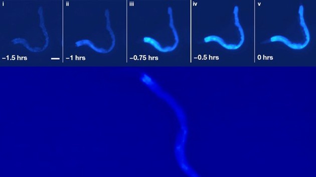 Un grupo de investigadores logró captar cómo la muerte ‘se extiende’ por el cuerpo de un gusano como una ola azul fluorescente. Los expertos opinan que su estudio permitirá entender mejor el proceso de la muerte y quizá aumentar la esperanza de vida