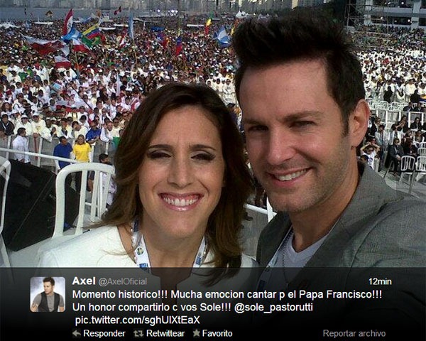 Más tarde, Axel contó cómo vivió esta experiencia en una entrevista con Pablo Duggan para C5N:  "Fue muy emocionante lo que vivimos con Sole y con Martín. Fue el momento más importante de nuestras vidas no solo como artistas sino a nivel emoción, tener al Papa adelante y  a 4 millones de personas atrás tuyo. Fue muy grosso, sentí un nudo en la panza (…). Cantar para él fue un orgullo".