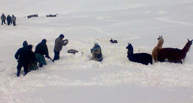 Potosí.- La intensa nevada que cayó en los últimos días segó la vida de dos personas en Potosí, afectó a 45 comunidades y bloqueó al menos a 80 motorizados en carreteras de Cochabamba; mientras, 7.354 familias sufren los efectos de la sequía en el Chaco Chuquisaqueño.