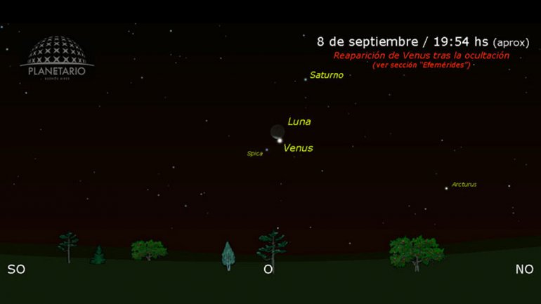 Así fue que ocultó durante un tiempo a Venus, el planeta más fácilmente visible desde la Tierra. Luego, irá por Saturno. Sigue Gilarte: "La Luna habrá avanzado en el cielo hacia el oeste, en su movimiento de traslación alrededor de la Tierra. En esta ocasión y de su mano, nos llevará a ver el planeta Saturno, la ‘estrella’ más próxima y brillante a la Luna y con respecto a ella se encuentra arriba y a la derecha".