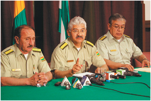 Los generales que anoche confirmaron que Ormachea fue dado de baja de forma definitiva de la Policía.