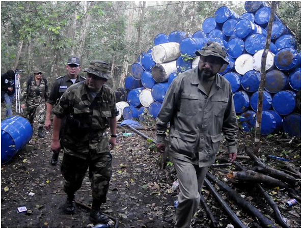 Fabricio Ormachea contaba con amplios vínculos en el Gobierno de Evo Morales, aunque dice que actuó a título personal. La foto de archivo lo muestra detrás del entonces ministro de Gobierno, Alfredo Rada, en un operativo antidroga en el Chapare. El Deber.