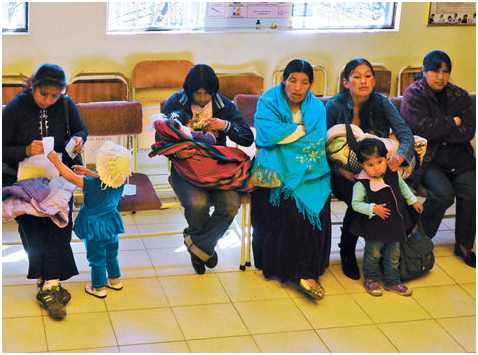Pago. Varias madres esperan la cancelación del bono en un centro de salud de la zona Norte de La Paz. Foto: Eduardo Schwartzberg – archivo