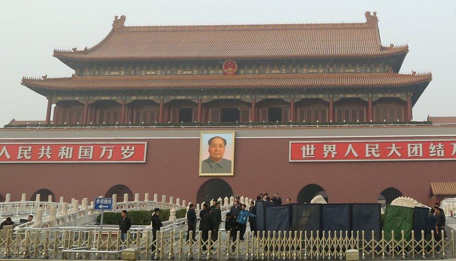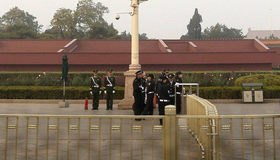 Las autoridades han colocado a la entrada de la Ciudad Prohibida una serie de biombos que impiden ver la escena donde se produjo el incidente. (Foto: EFE)