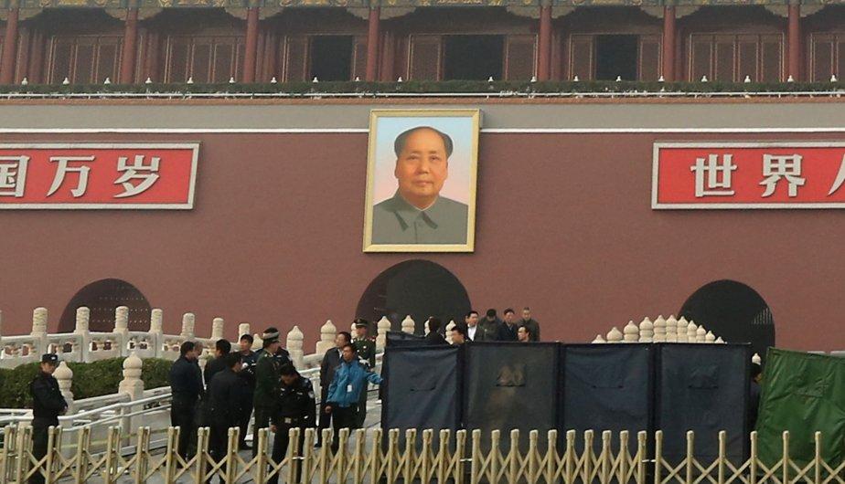 Cinco personas murieron, entre ellas una turista filipina, y 38 resultaron heridas hoy, después de que un coche invadiera una acera en Pekín y se incendiara, bajo el retrato de Mao. (Foto: EFE)