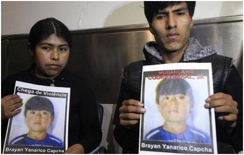 Brayan, de cinco años, fue asesinado con un tiro en la cabeza en la madrugada del 28 de junio en una favela de Sao Paulo, porque no dejaba de llorar por el miedo que sentía por el asalto del cual eran víctimas sus padres.