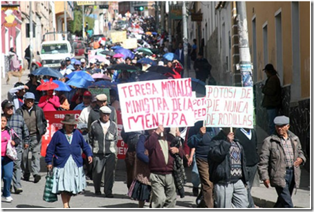 Potosí, con una masiva marcha, ratificó ayer la defensa de un escaño y la atención a su pliego petitorio. Foto Apg Agencia.