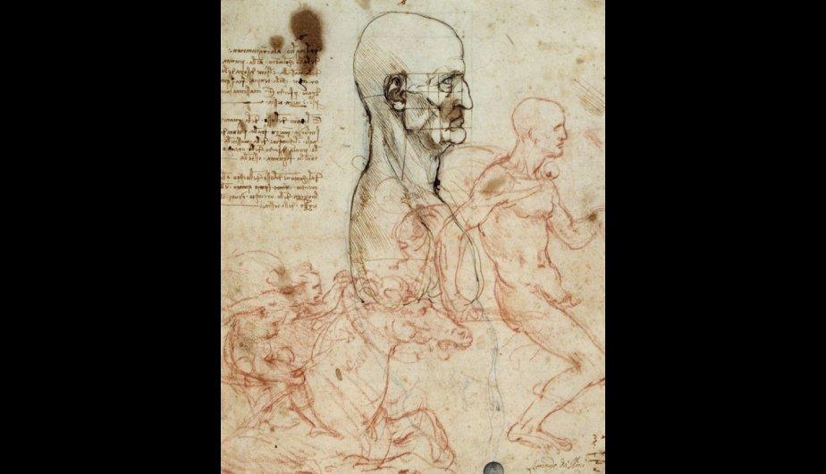 Tronco de un hombre de perfil con esquema de proporción, estudio de caballo y caballeros. (Foto: Elpais.com)