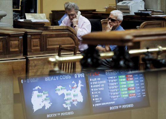 Varios inversores en el parqué de la Bolsa de Madrid / EFE