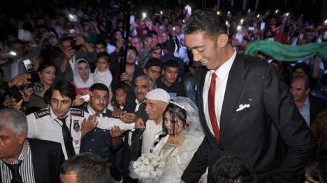 «Estoy contento de haber hallado al fin a alguien que me acepte y que me amará» declaró el recién casado ante las cámaras. El vertiginoso crecimiento del turco, reconocido en 2011 por el Libro Guinness de los Récords como el hombre más alto del mundo, es producto de un tumor que afecta a su hipófisis. En 2010 fue operado de su tumor en la universidad de Virginia (Estados Unidos) y le prescribieron medicamentos para controlar su nivel de hormona de crecimiento.