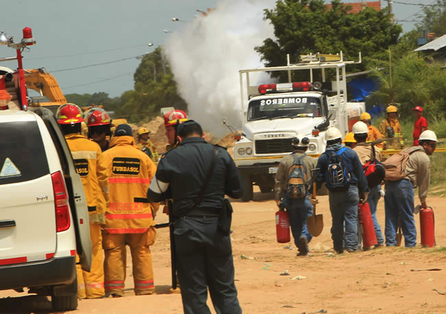Ayer, pasadas las 9:00, la tubería que trae el combustible desde la planta de Río Grande hasta la refinería de Palmasola fue dañada por una excavadora de la empresa Apolo que realiza movimientos de tierra para la pavimentación del lugar, lo que provocó una intensa fuga de gas licuado de petróleo por más de 10 horas. Los vecinos de los barrios Tiluchi y Plan 4.000 fueron tomados por sorpresas y obligados a evacuar del lugar.