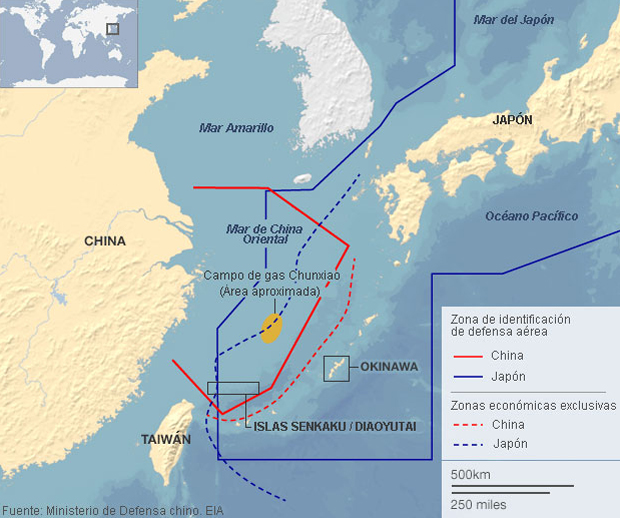 Japón ha dicho que la disposición china en torno al espacio aéreo sobre las islas "no es válida en absoluto". En Washington, el Pentágono demuestra con sus B-52 que tampoco parece dispuesto a acatar la posición china.