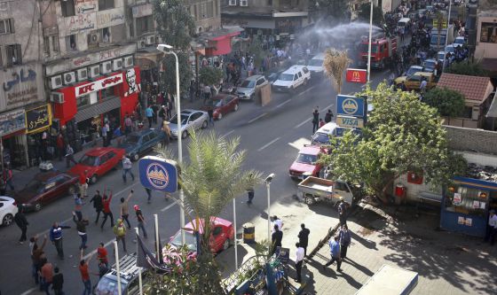 La policía usa agua a presión para dispersar una protesta en El Cairo. / Sabry Khaled (AP)