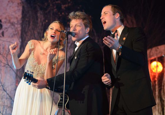 El príncipe Guillermo canta con Bon Jovi y Taylor Swift durante una gala benéfica del palacio de Kensington, el 26 de noviembre de 2013. / Dominic Lipinski (AFP)
