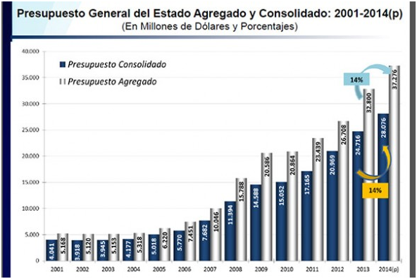 Presupuesto general del Estado agregado y consolidado (2001-2014). Los Tiempos.